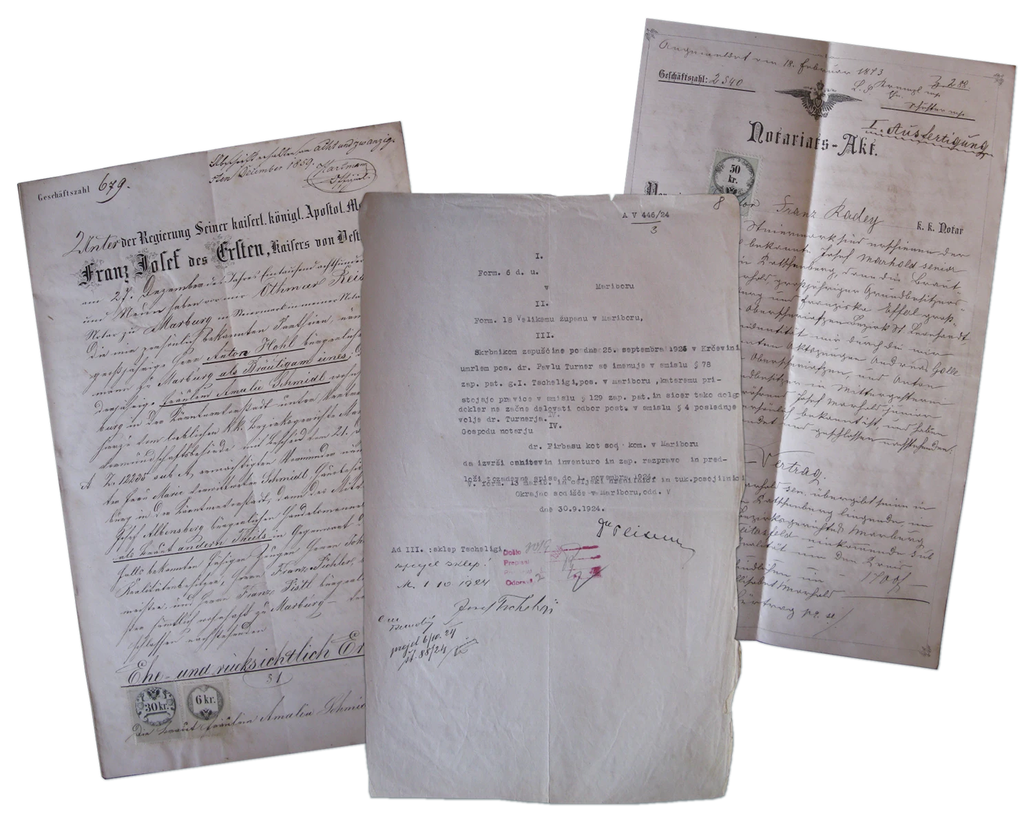 Notarski akt Službena številka 2540 Maribor, 25. februar 1873 Cesarsko kraljevi notar v Mariboru, Dr. Franc Radey
